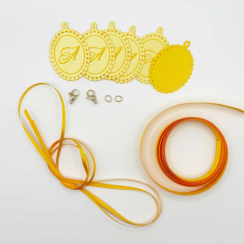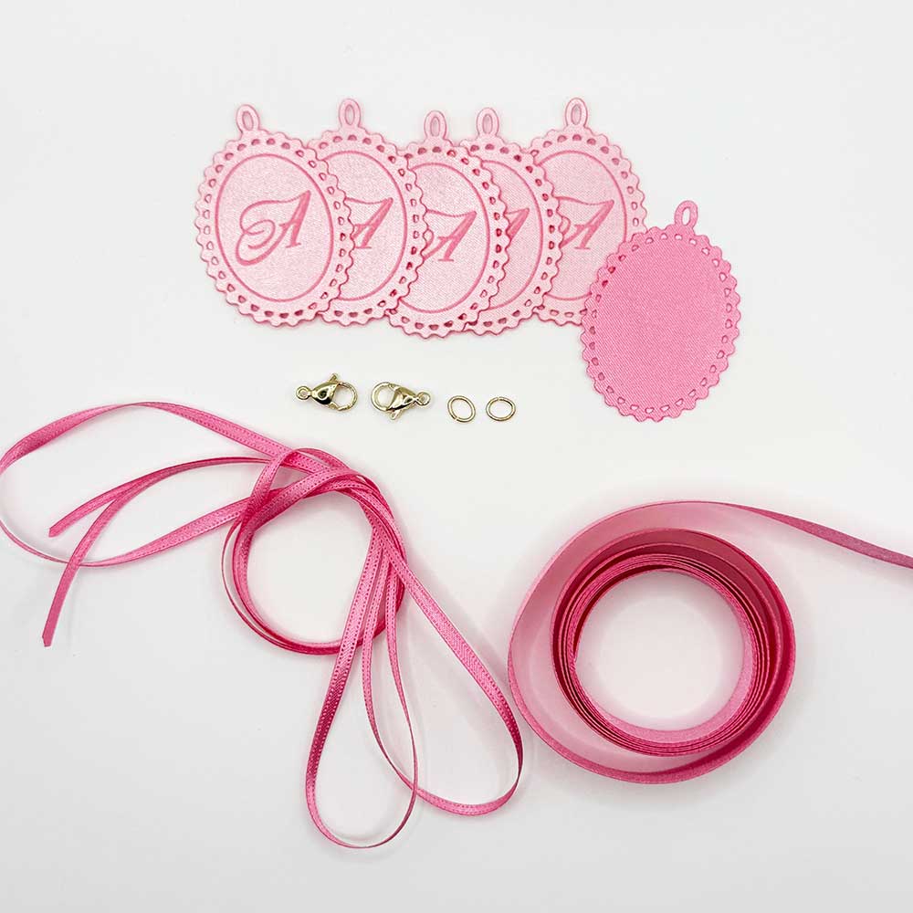 ■セット内容 : オーナメント6枚、カニカン2個、丸カン2個、3mm幅リボン1m(ピンク)、12mm幅リボン1m(ピンク)